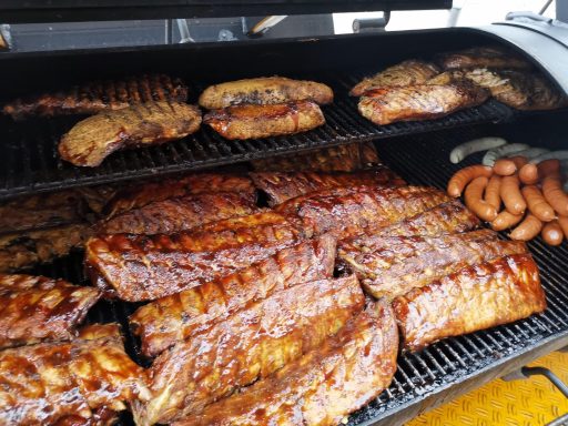 Langsam über Stunden im Smokeranhänger gegart mit Holzfeuer. Wie in den USA mit hohem Fleischanteil, wenig Schnick-Schnack, einfach lecker...