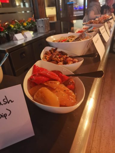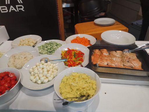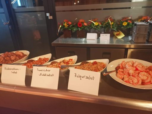 Vorspeisen- und Salatbuffet mit verschieden Fleisch- und Fischspezialitäten und selbstgemachten Saucen. Da ist für jeden was dabei, selbst Vegetarier werden reichhaltig bedient. Und als Abschluss auch noch Dessert klassisch oder vom Grill.